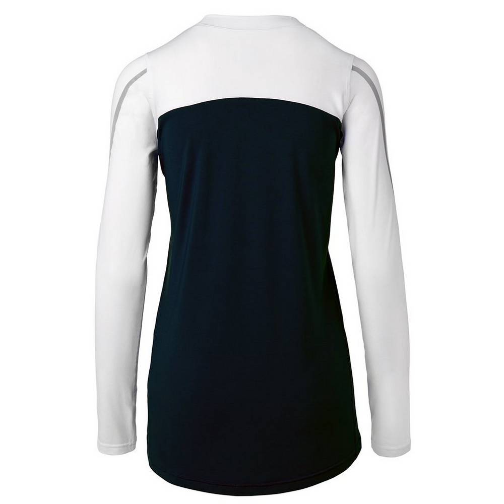Shop the Mizuno Techno VII Long Sleeve Volleyball Jersey for women. Designed for performance and comfort, this jersey features a sleek black and white design. Available in sizes XS to XXL. Clearance sale with free shipping and easy returns.