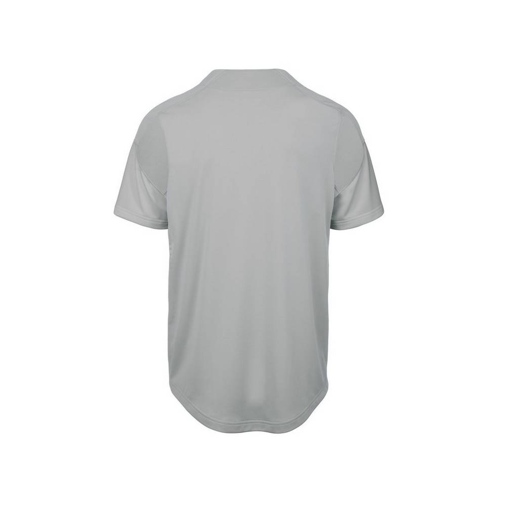 Grey Mizuno Aerolite Full Button Baseball Jersey for men. Lightweight, comfortable fit with free delivery and 3-year warranty.