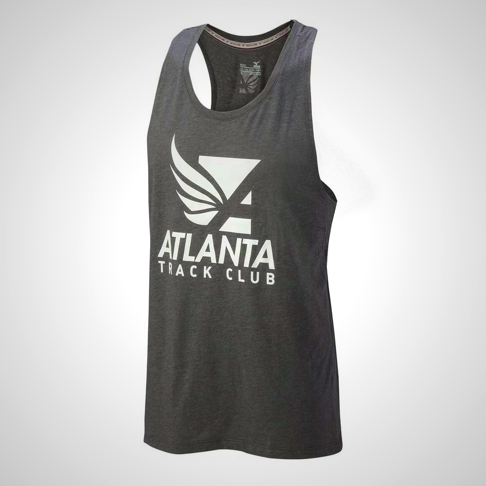 Lightweight and breathable Mizuno Atlanta Track Club 50/50 tank top for men. Ideal for workouts or casual wear. Available in sizes XS to XXL.