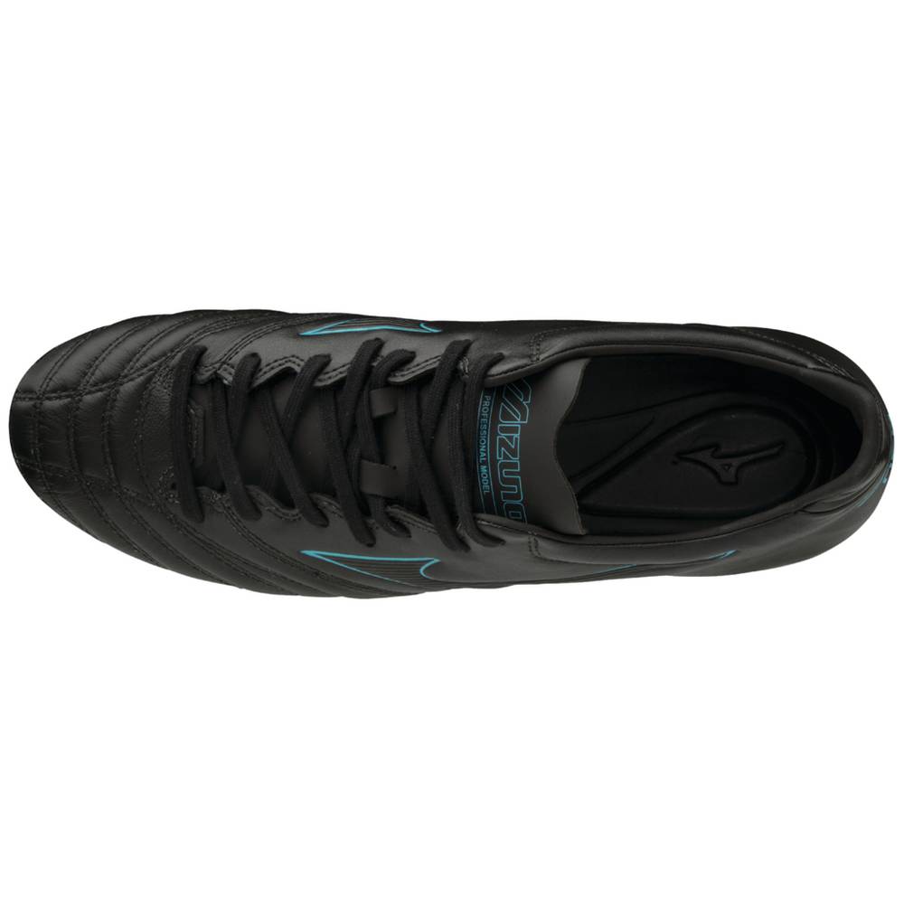 Mizuno Morelia Neo KL II soccer cleats in Black/Blue Turquoise. Lightweight design with premium comfort for performance play. Available in US sizes 5-14.
