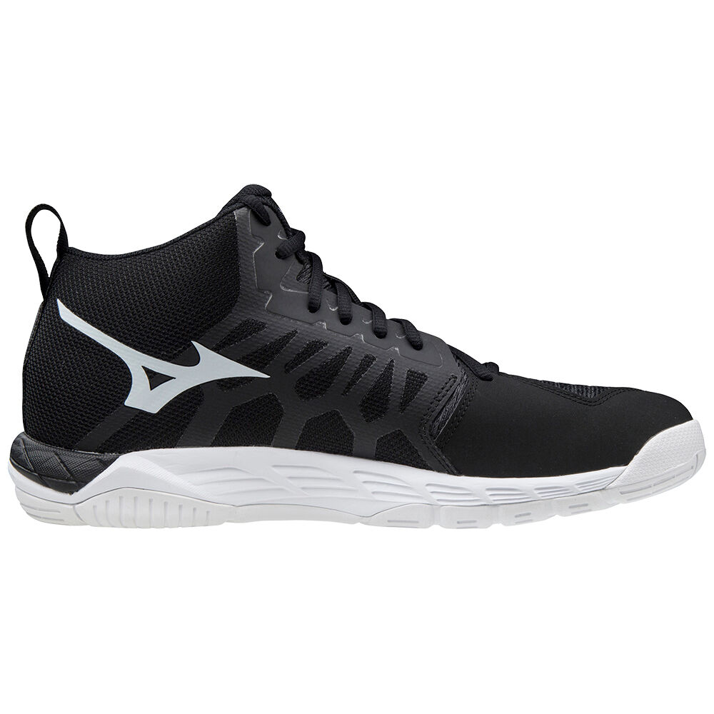 Mizuno Wave Supersonic 2 Mid volleyball shoes in black/white/grey offer superior comfort and support for athletes. Ideal for both training and competition.