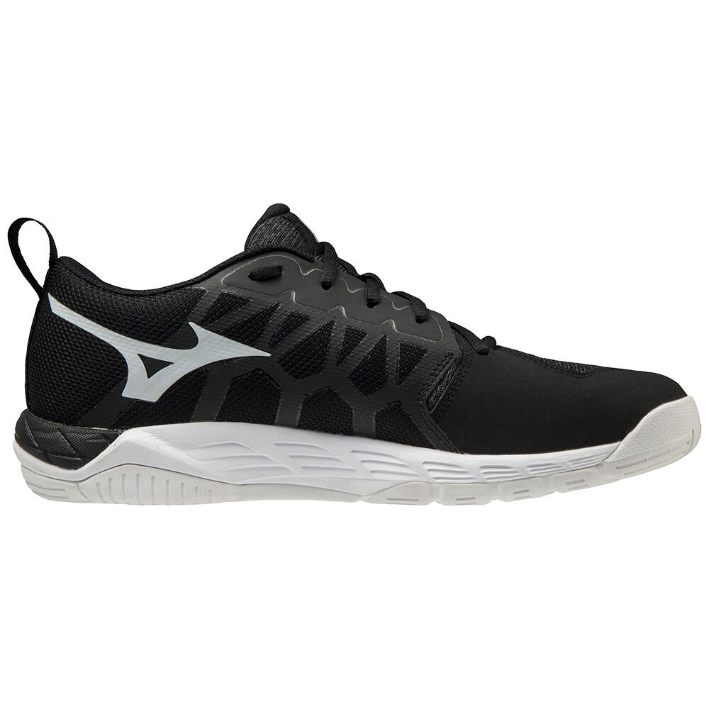 Mizuno Wave Supersonic 2 women’s volleyball shoes in Black/White/Grey. Lightweight, cushioned, and designed for peak performance on the court.