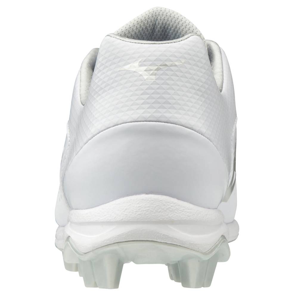 White Mizuno Finch Select Nine Molded cleats for women offer durability and comfort for softball players. Available in US sizes 4 to 13.