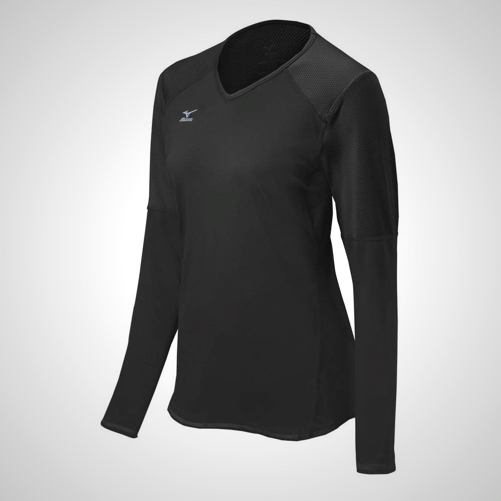 Get the Black Mizuno Techno VI Long Sleeve Volleyball Jersey for Women in sizes XS to XXL. High-quality fabric, comfortable fit, and stylish design for performance and comfort on the court. Enjoy free shipping and easy returns.