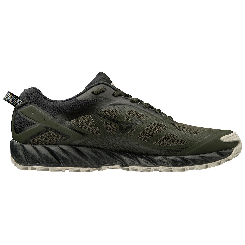 Mizuno WAVE IBUKI 2 men’s trail running shoes in Deep Green/Black offer durable comfort and superior grip for rugged outdoor trails.